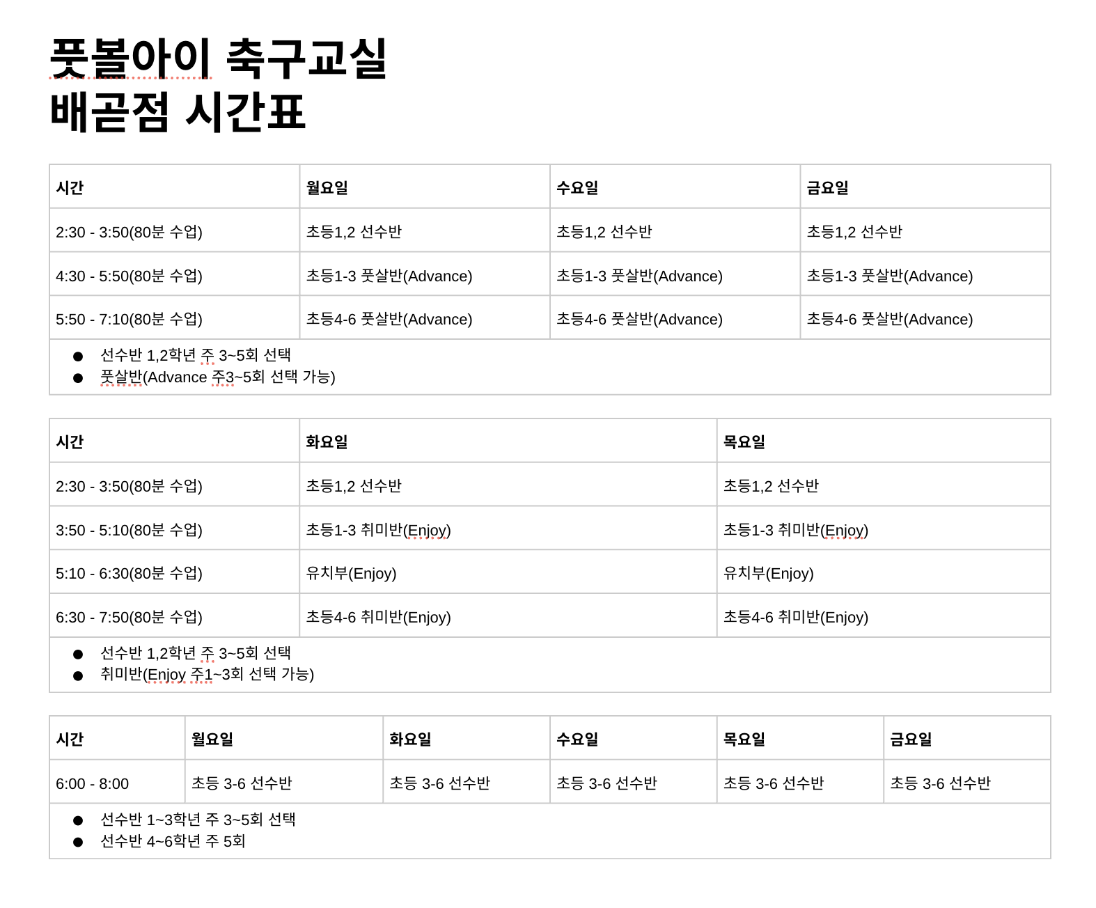 Enjoy반: 축구를 즐기며 기본기·체력·협동심을 기르는 취미 클래스